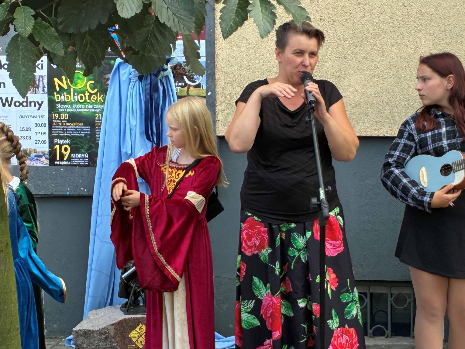 Temu uroczystemu i przesympatycznemu odsłonięciu figurki towarzyszyły występy dziecięcego Zespołu Ukulele pod kierownictwem pani Ewy Kwiecień oraz zagrał moryński zespół muzyki dawnej. Nie zabrakło również koncertu akordeonowego, który popisowo wykonali pan Zygfryd Ferdynus popularny w Moryniu „Fred” oraz wspomniana już wcześniej Ewa Kwiecień.