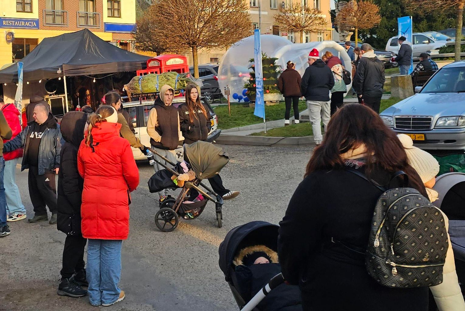 Stoiska rozstawiono na skraju rynku, co pozwoliło zachować główne ciągi komunikacyjne – to pragmatyczne rozwiązanie również przywodzi na myśl dawny ład handlowy.