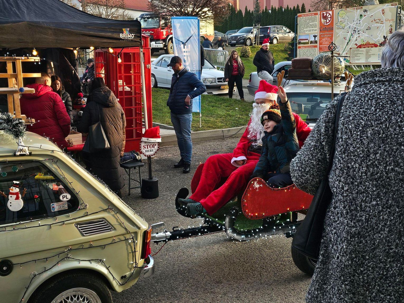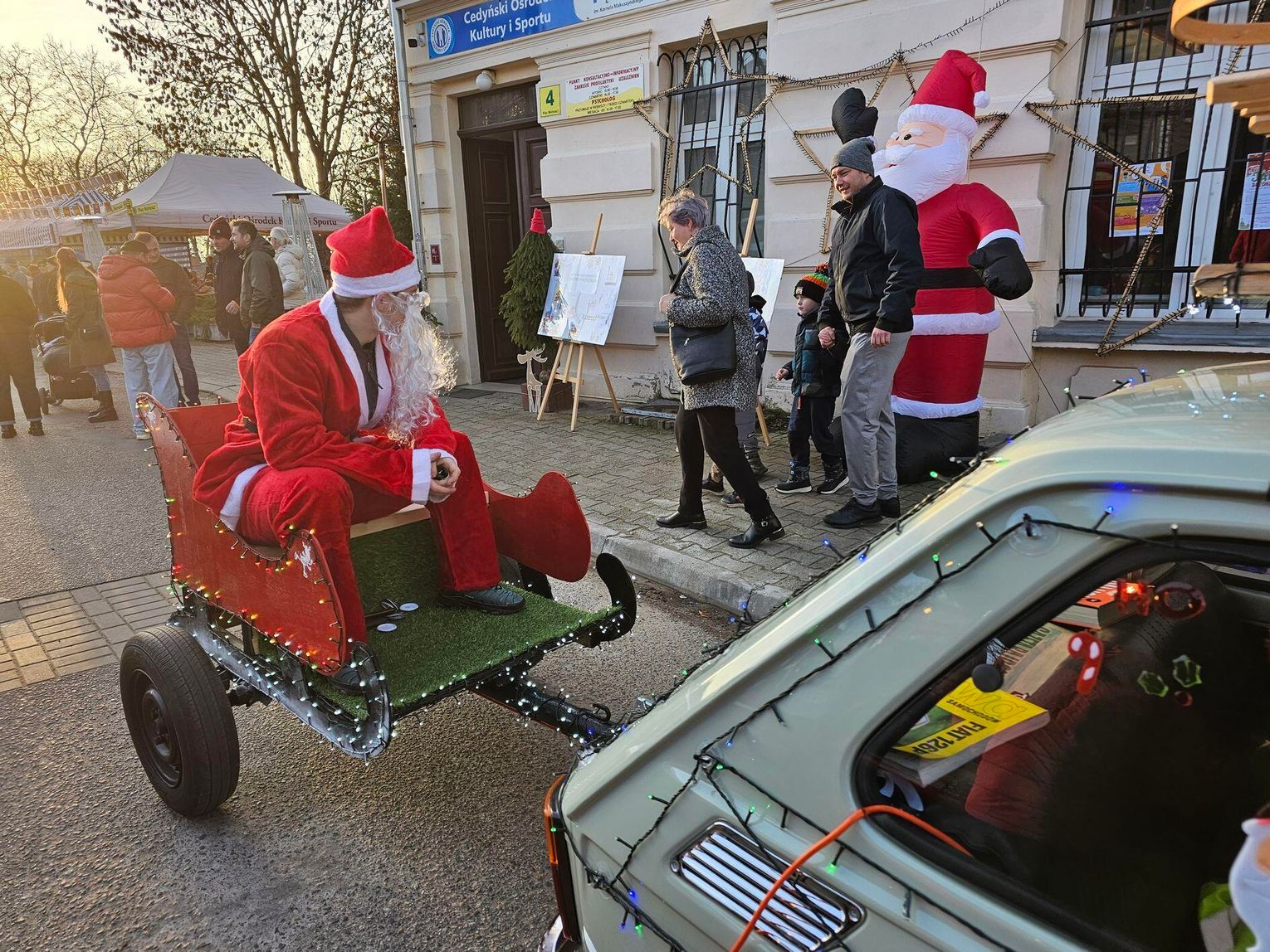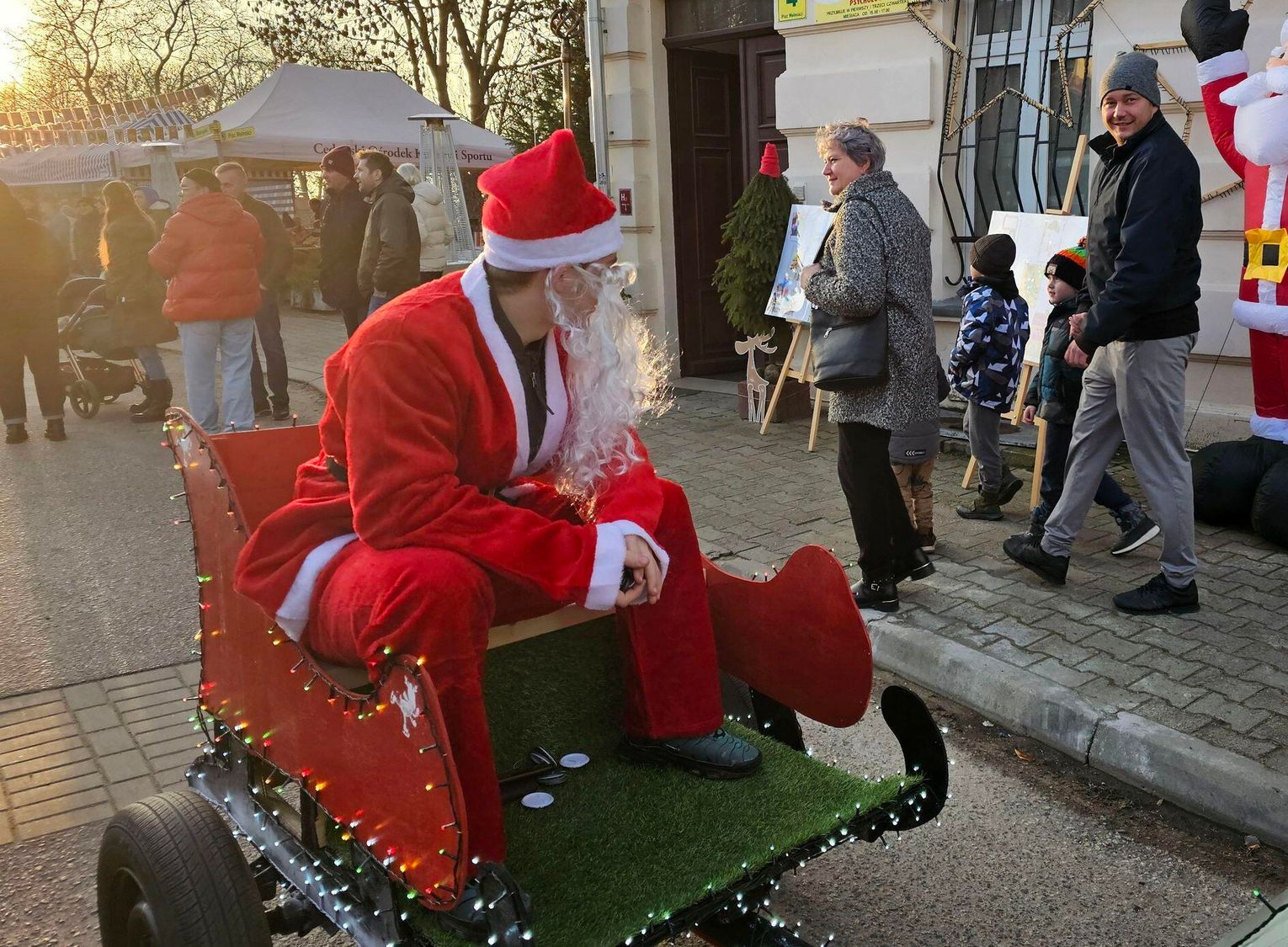 Jarmark to jednak nie tylko handel, to przede wszystkim atmosfera radości. Organizatorzy zadbali o moc atrakcji dla całych rodzin. Najmłodsi z wypiekami na twarzy witali Świętego Mikołaja, a specjalny tron za samochodem "maluchem" stał się idealnym miejscem na pamiątkowe zdjęcie.
