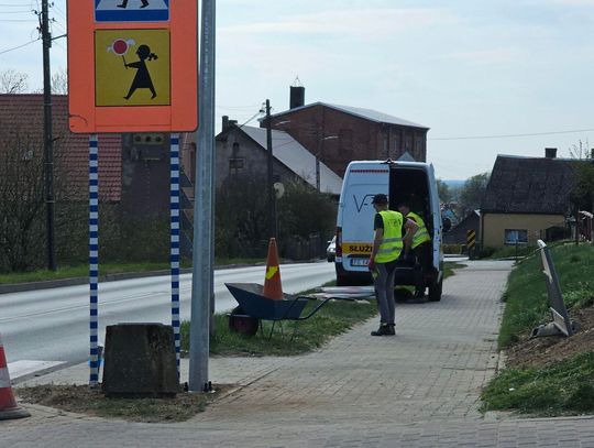 Prace skoncentrowano w okolicach sklepu Dino – to właśnie tam, na przejściu dla pieszych, które od lat budziło obawy mieszkańców, powstaje nowa sygnalizacja. Robotnicy wykonali kluczowe prace ziemne: wykopano fundamenty, zabetonowano podstawy i osadzono pierwsze słupki konstrukcyjne.